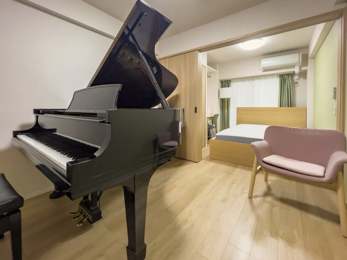 『ミュージションStay』は、マンスリータイプの利用を想定しており、最低でも1ヶ月の居住が可能です。さらに、1室で最大3名まで宿泊できるので、友人や家族と一緒に音楽を楽しむこともできます。このサービスの魅力は、実際に暮らすことで防音性能と住み心地を体感できることです。特に音楽を楽しむためのアメニティが豊富で、グランドピアノをはじめとした楽器の演奏も可能です。