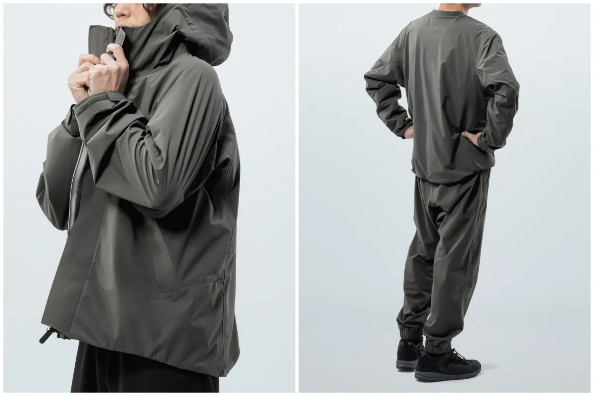 『QURULIFABRIC』のスタートにあたって、ナフィアスは「Rain, reconsidered」というプロジェクトを立ち上げました。このプロジェクトのもと、ナノファイバー素材を活かし、従来のレインウェアを再定義することを目指しています。まず第一弾として、「Nanofiber Mountain Jacket」が先月発売され、さらに新たに「Nanofiber Pullover」と「Nanofiber Pants」が登場。これらの製品は防水性や通気性、軽さを兼ね備えたレインウェアとして設計されています。