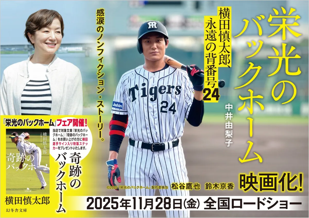 - - 『栄光のバックホーム横田慎太郎、永遠の背番号24』 中井由梨子 著 幻冬舎文庫 税込792円 ISBN 978-4-344-43486-8