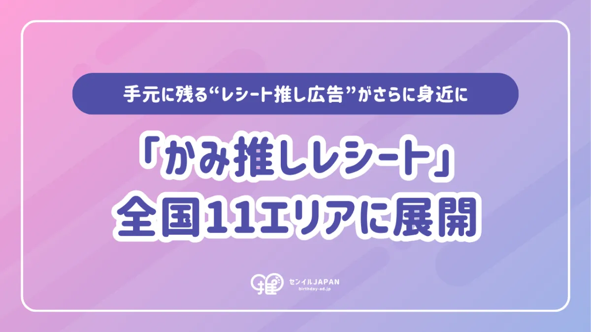 「かみ推しレシート」というユニークなサービスは、ファンが応援するアーティストやアイドルの誕生日や特別な日にレシートに広告を掲載することができるものです。これにより推しの存在を身近に感じられるだけでなく、特別な思い出を手元に残すことができます。これまで関西エリアで展開されていましたが、今回全国11エリアへの拡大により、北海道から九州まで幅広い地域で楽しむことが可能になりました。