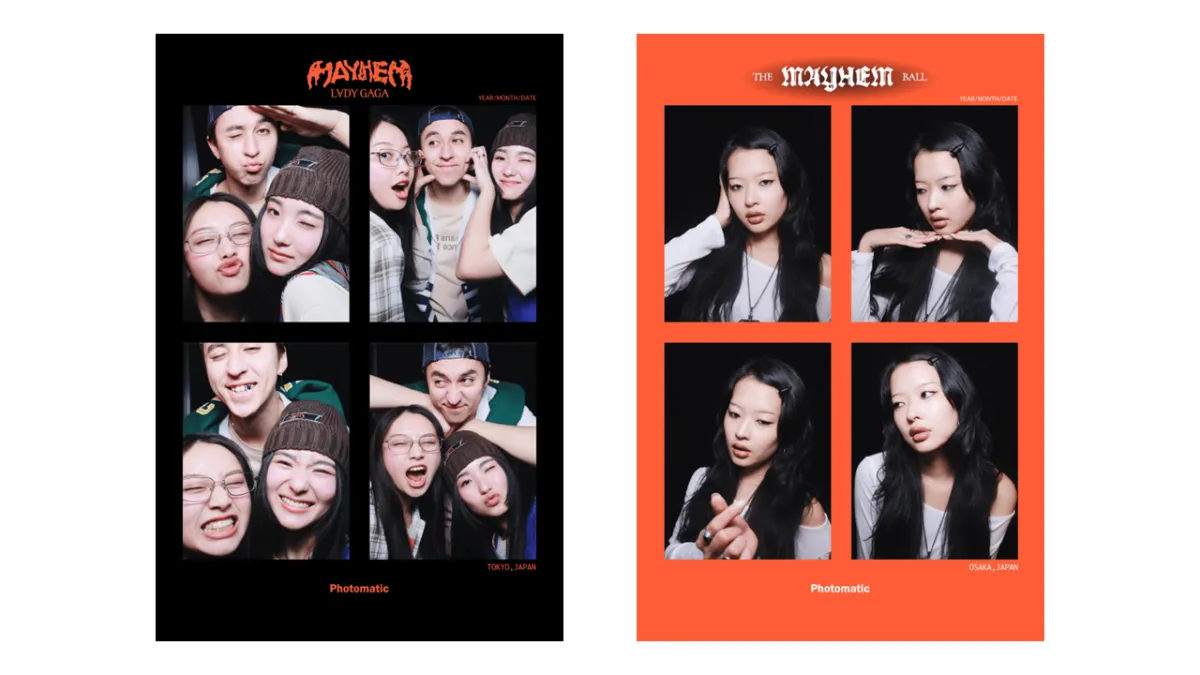 このポップアップストアは、レディー・ガガのワールドツアー「The MAYHEM Ball」に合わせて実施されるもので、各会場で異なるデザインのオリジナルフレームが特別に登場します。背景には、ガガの「MAYHEM(混沌)」のエッセンスが詰まった空間が広がり、ファンはその瞬間を切り取るチャンスです。