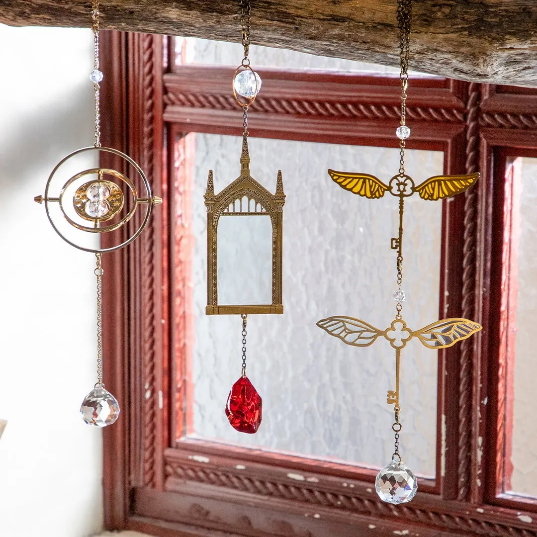 新たに登場するサンキャッチャーには「みぞの鏡」「フライングキー」「タイムターナー」の3種類があり、それぞれに独自のデザインが施されています。窓辺に吊るすことで、太陽の光を美しく反射させ、部屋を明るく演出します。