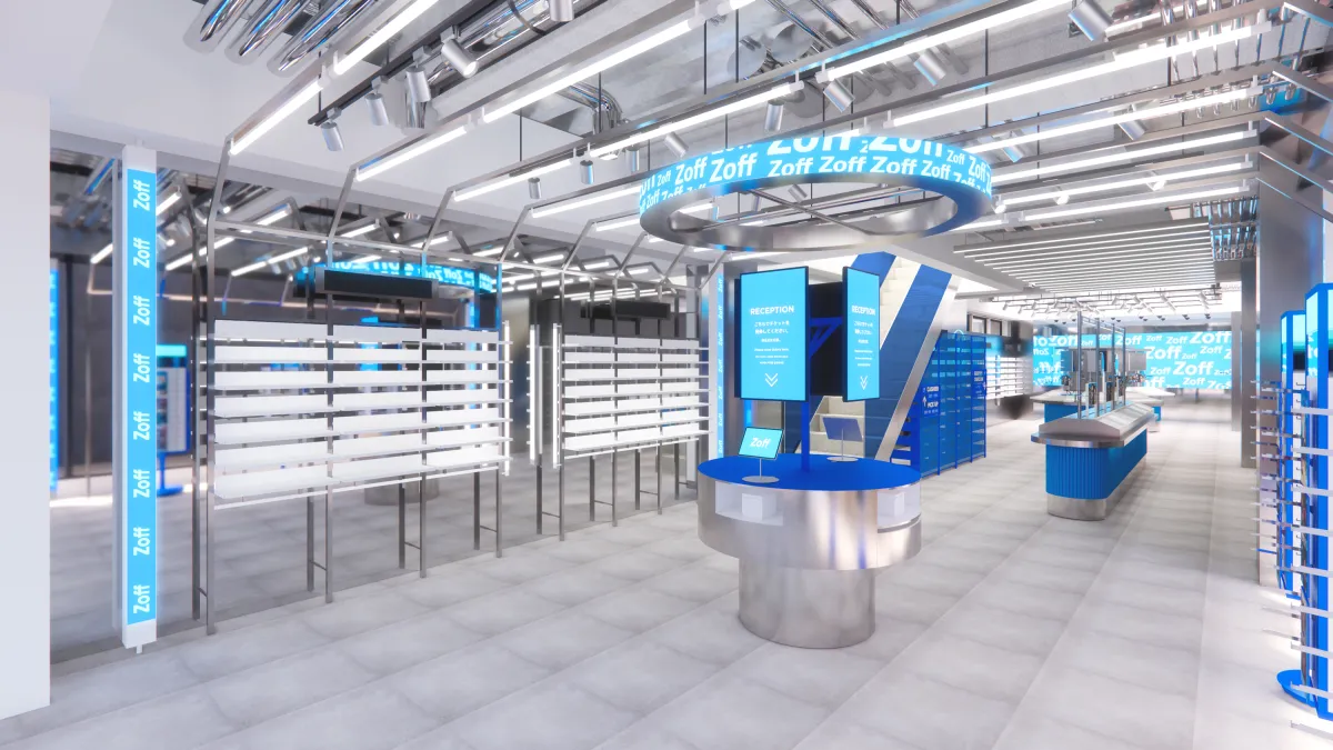 「GATE」の交差点に位置し、未来のショッピング体験を具体的に示します。さらに、AIを取り入れた次世代の接客サービス「Zoffコンシェル」を導入しており、言語の壁を感じることなく、スムーズな購入体験が可能です。