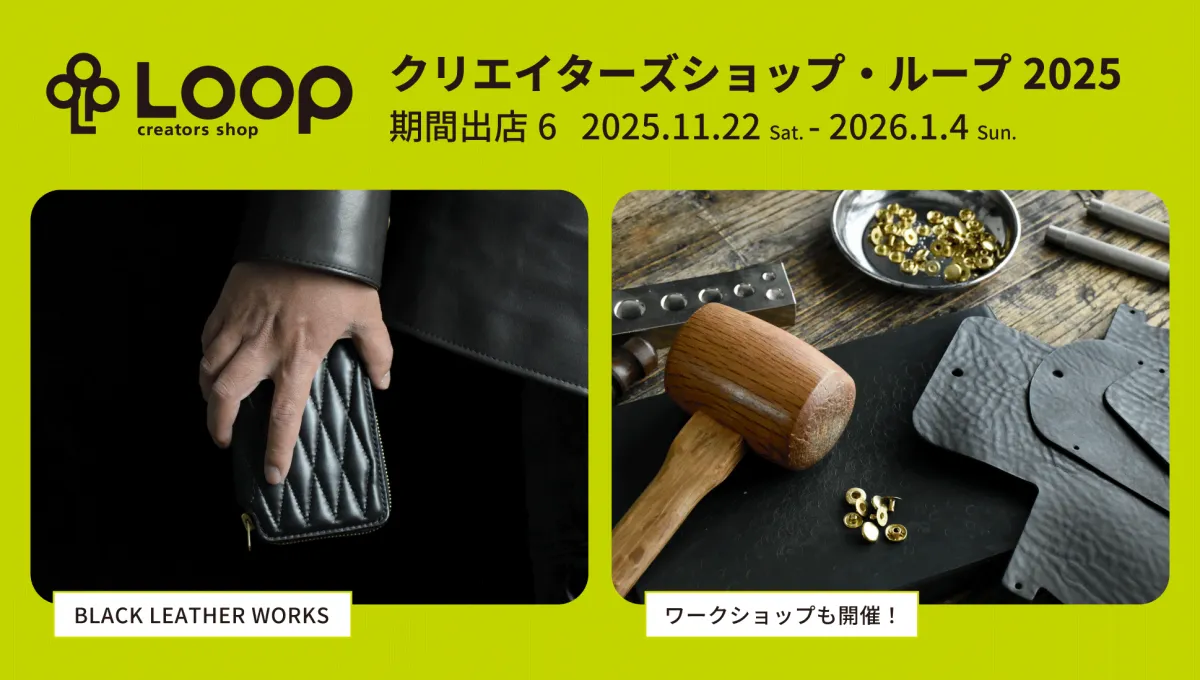 さて、2025年11月22日から2026年1月4日までの期間、特に注目すべきレザーブランド「BLACK LEATHER WORKS」が出店します。このブランドは、特に「BLACK(黒)」というテーマに重きを置いており、経年変化を楽しめる高品質なレザー製品を展開しています。代表の深見俊介氏が手掛けるこのブランドは、財布やバッグなど、力強いデザインと独特の素材感が魅力。使用されるレザーは特にイタリアの伝統的なバケッタレザーで、100%植物タンニンで処理され、長年の使用にも耐えられる耐久性を誇ります。