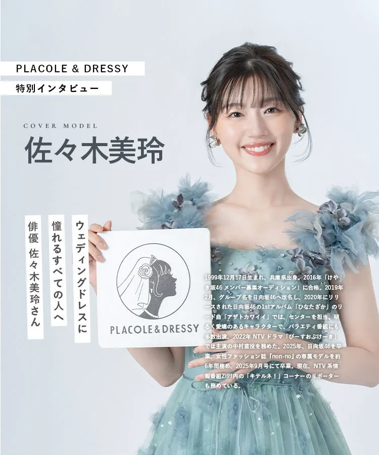 俳優の佐々木美玲さんが、人気ブランド『PLACOLE&DRESSY』の特別企画にウェディングドレス姿で登場しました。この企画は、ウェディングドレスをより身近に楽しんでもらうためのもので、特別に用意された内容となっています。このプロジェクトは、冒険社プラコレが展開しており、2025年11月号で彼女の魅力とメッセージを届けました。