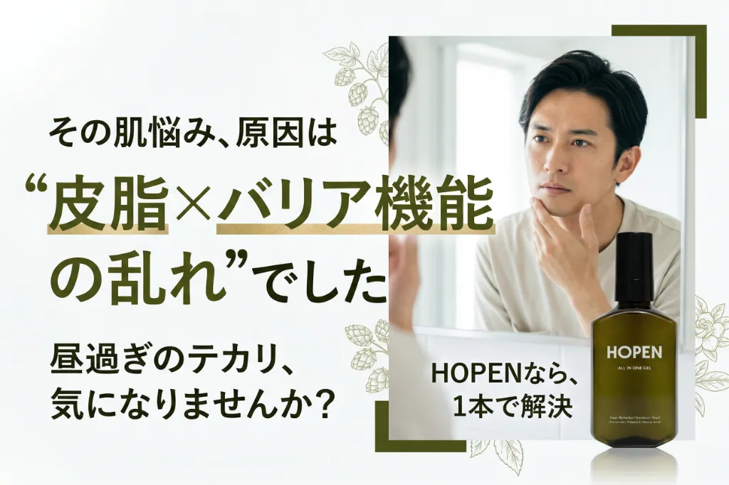 ブランド名「HOPEN」は、ホップ、ふきのとう、クチナシ、酵母、セラミド、ビタミンC、アミノ酸といった自然の成分を取り入れて、男性のスキンケアをサポートすることを目的としています。「清潔感」は、日常生活やビジネスシーンにおいても大切な要素であり、HOPENはスキンケアを通じて、男性の自信を引き出すことを目指しています。