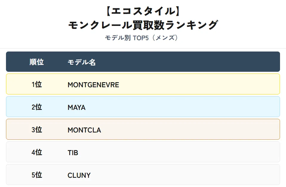 株式会社スタンディングポイントが運営する洋服・ブランド買取専門店「エコスタイル」は、2025年12月から2026年2月までのモンクレールの買取実績をもとに、モデル別の買取ランキングを発表しました。本記事では、メンズ・レディースの人気モデル別ランキングや、高額買取アイテムのTOP5を詳しく見ていきます。