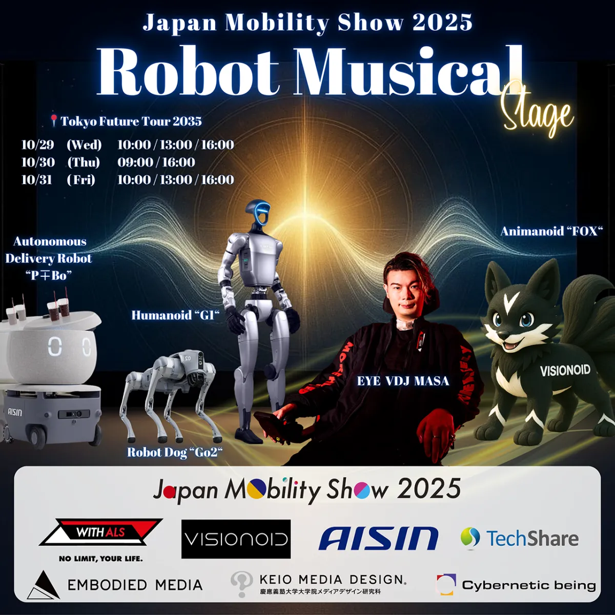 「Japan Mobility Show 2025」でのEYE VDJ MASAとアニマノイド「FOX」の共演は、未来のテクノロジーがどのように進化し、私たちの生活をより豊かにしていくのかを体感できる貴重な機会です。ぜひ、その目で未来を体験してください。