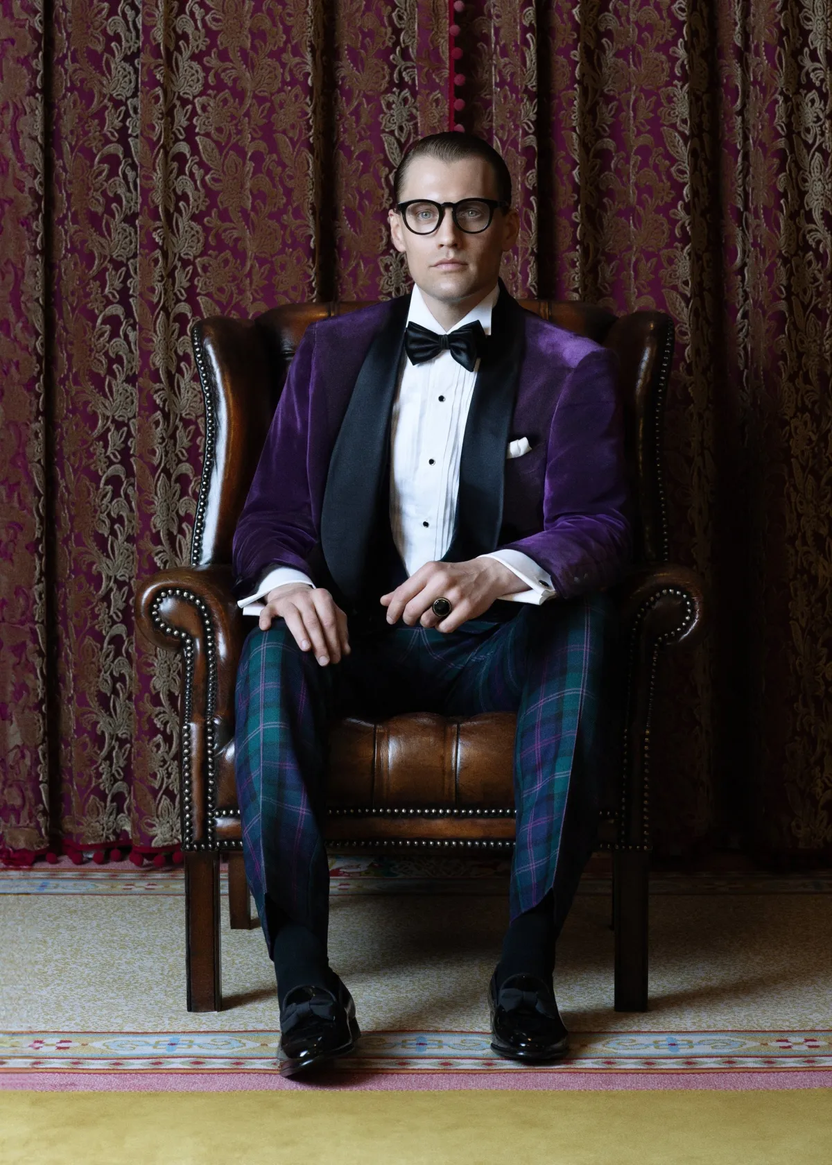 - 特徴: 精緻な織りで理想のシルエットをキープし、ブラックウォッチ柄が印象的。