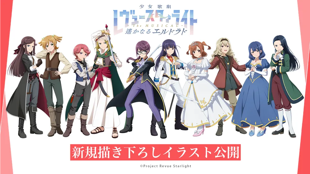 舞台「少女☆歌劇 レヴュースタァライト -The MUSICAL- 遙かなるエルドラド」が、2026年5月11日から17日まで東京ドームシティ シアターGロッソで上演されます。この新作舞台の魅力として、特に注目したいのが新たに公開された描き下ろしイラストです。イラストは、舞台の主要キャラクターたちを題材にしており、キャストに合わせた10人の豊かな表現が楽しめます。