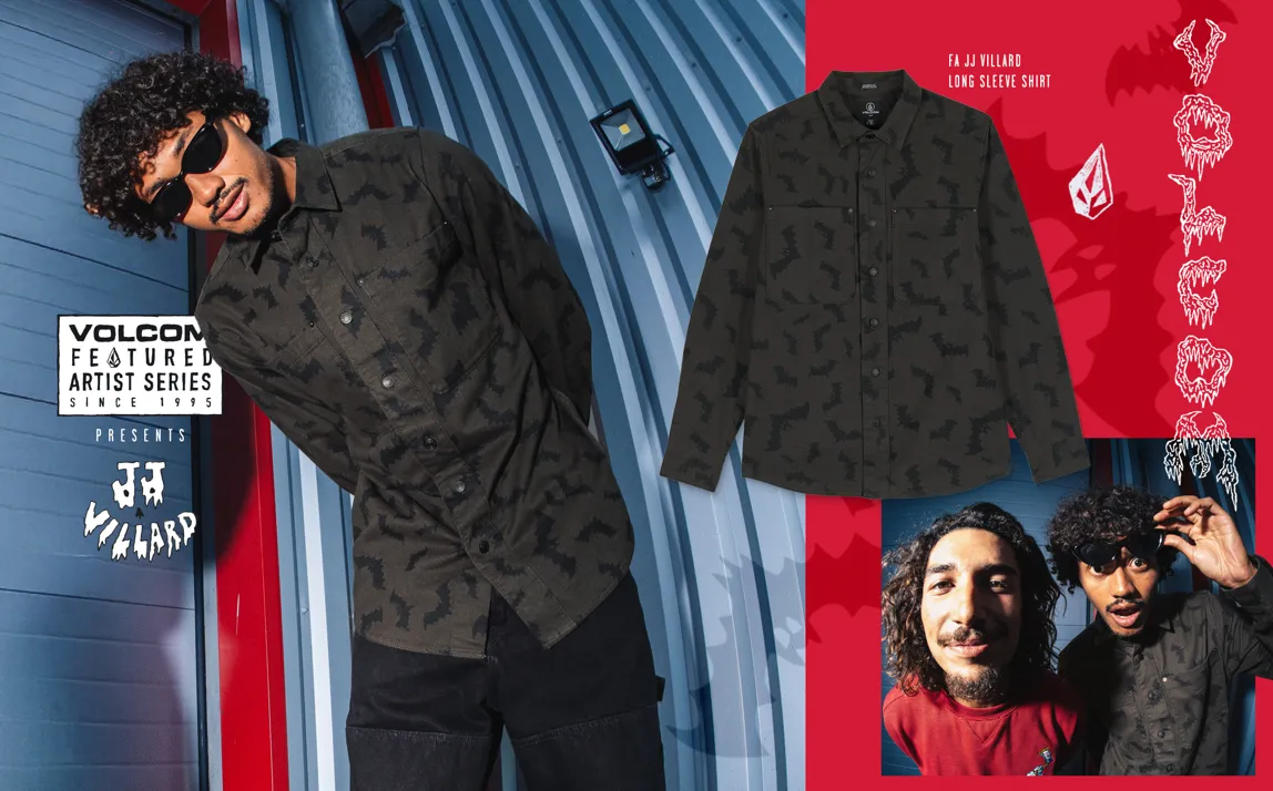 VOLCOMが注目するフィーチャードアーティスト、JJ Villard(ジェイジェイ・ヴィラード)が登場しました。アニメーションとアートの領域で独自の存在感を示す彼は、まさにボーダーレスなクリエイターです。彼のアプローチは、アニメーション、美術、カルチャー、そしてスケートの精神を融合させたもので、今回リリースされたプロダクトにもそのエッセンスが色濃く反映されています。