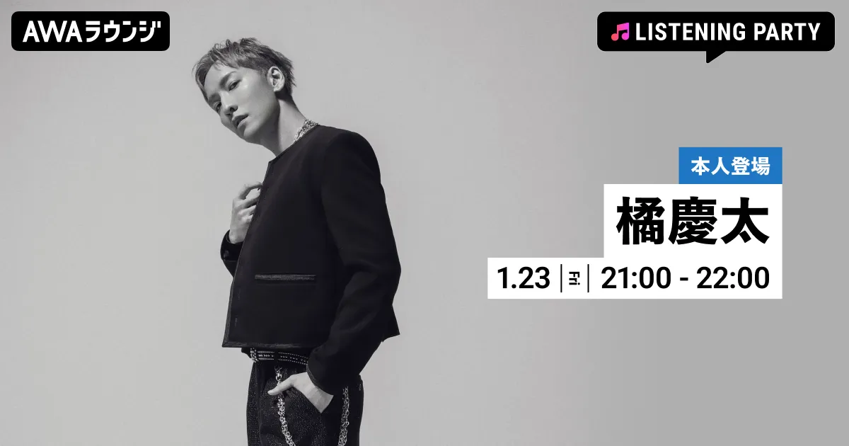 2026年1月23日(金)21:00から22:00の1時間、AWA株式会社が提供するオンライン音楽ストリーミングサービス「AWA」にて、橘慶太によるリスニングパーティーが開催されます。このイベントは、彼のニューアルバム『RE:ONE』のリリースを祝うもので、参加者は無料で楽しむことができるパーティーです。