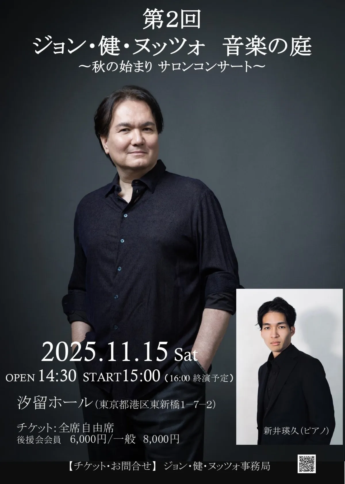 音楽ファンの皆様に朗報です!2025年11月15日(土)、汐留ホールにて「第2回 ジョン・健・ヌッツォ 音楽の庭」が開催されます。アットホームな雰囲気の中で、非常に近い距離で音楽を楽しむことができるこのサロンコンサートは、定番のコンサートとはひと味違った体験を提供します。