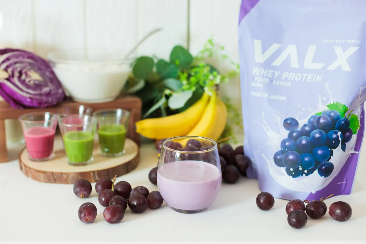 このスムージーは、VALXのホエイプロテイン巨峰風味を使用し、ホテルシェフが手がけた特製スムージー。巨峰の豊かな風味が活かされており、甘酒の自然な甘みとヨーグルトのまろやかさが見事に調和しています。これにより、飲みやすさと栄養バランスが両立。トレーニングを行っている方はもちろん、健康や美容を意識している方にも嬉しい一杯です。