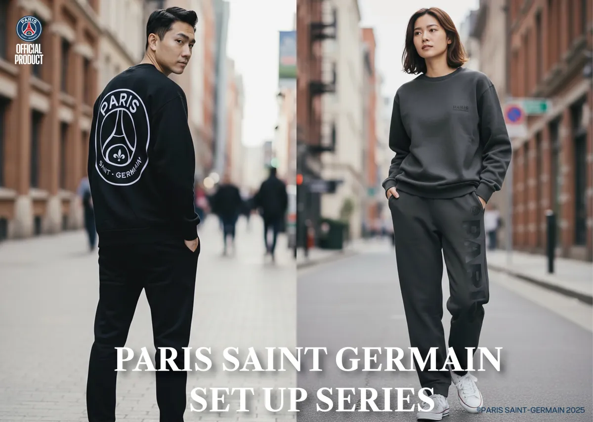 イーカムグループが展開する新商品、『パリサンジェルマン』SETUP WEAR SERIESが11月上旬に発売されました。このスタイリッシュなセットアップは、背中に配されたチームロゴが印象的で、シンプルながらも存在感を放っています。ひとつのアイテムでコーディネートが完成するため、忙しい日常の中でも簡単におしゃれを楽しめるのが魅力です。