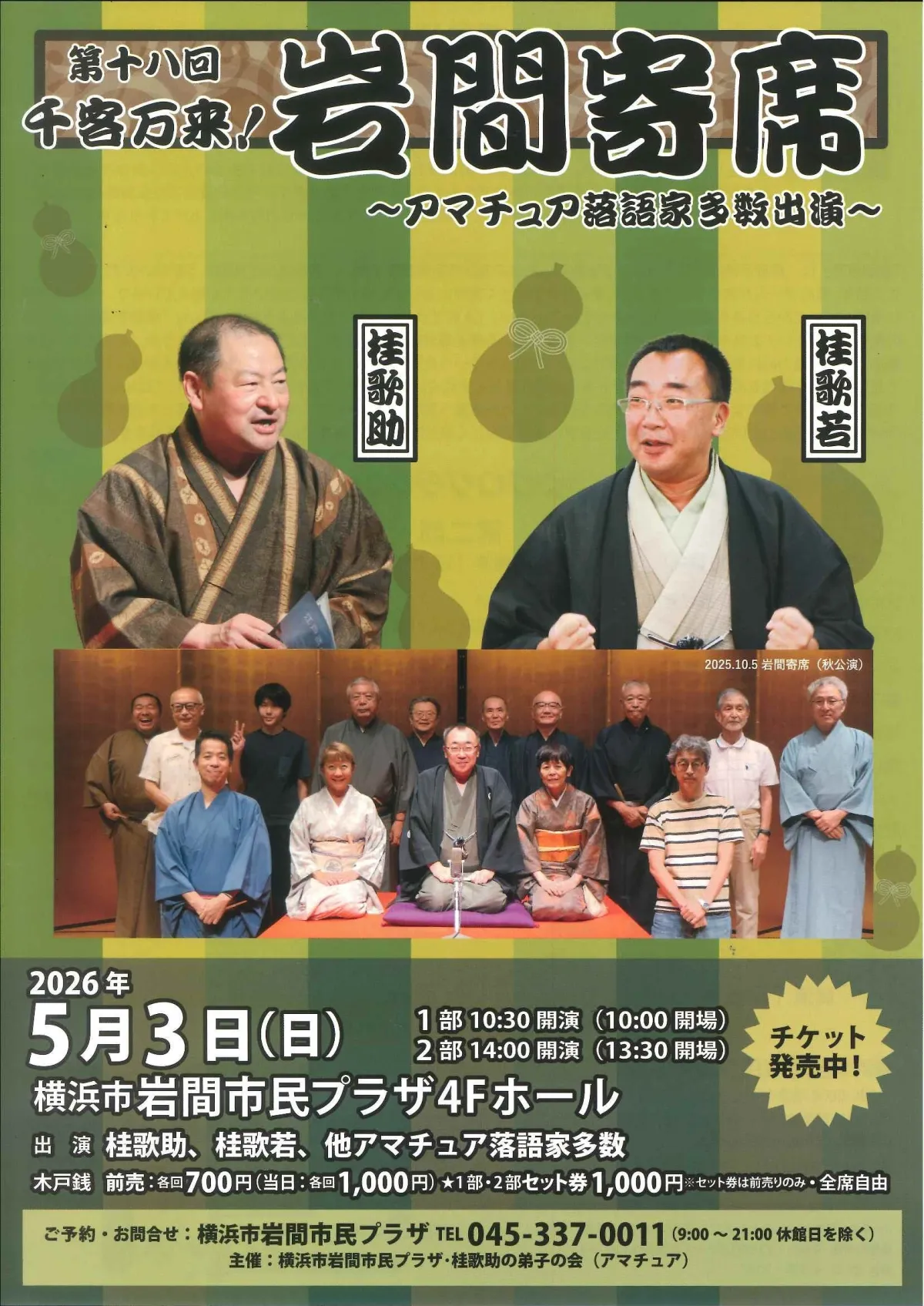 2026年5月3日(日)に、横浜市岩間市民プラザで第十八回「千客万来!岩間寄席」が開催されます。このイベントは、地元で活躍するアマチュア落語家たちと、著名な落語家をご覧いただける絶好の機会です。落語の持つ楽しさと魅力を感じながら、心温まるひと時を過ごしましょう。