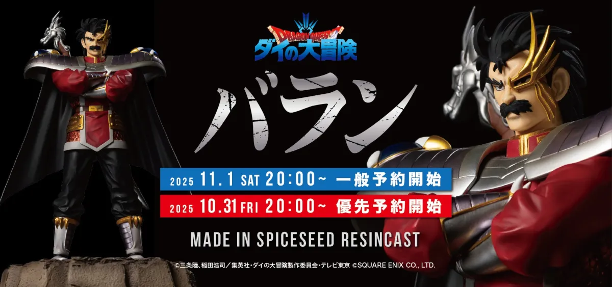 株式会社SpiceSeedのフィギュア事業部が手掛ける「ダイの大冒険」シリーズに新たな仲間が加わります。2025年11月1日(土)の夜8時より、シリーズ第七弾『バラン』の予約受付が開始されます。作品のファンにとって、待望のフィギュア登場となります。