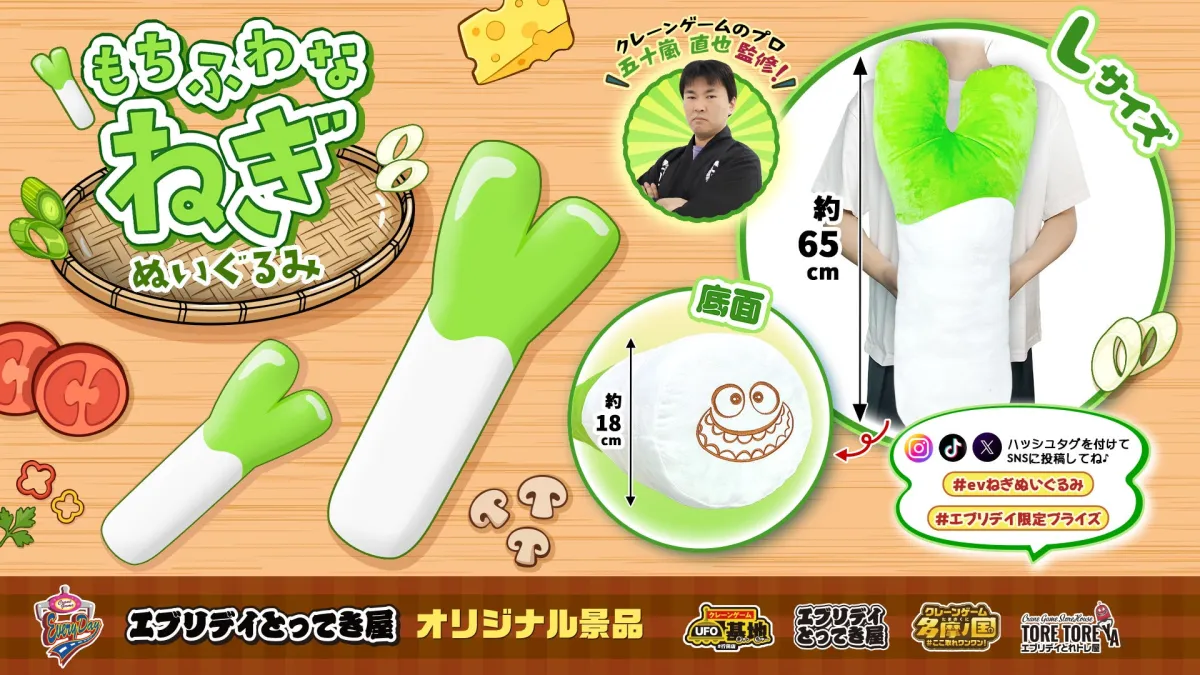 埼玉県桶川市に本社を置く株式会社東洋は、クレーンゲーム景品シリーズ「エブリデイ オリジナル景品」に新たな仲間として「もちふわなねぎぬいぐるみ」を発表しました。このぬいぐるみは、クレーンゲームのプロ・五十嵐直也氏の監修のもと誕生したユニークなアイテムです。