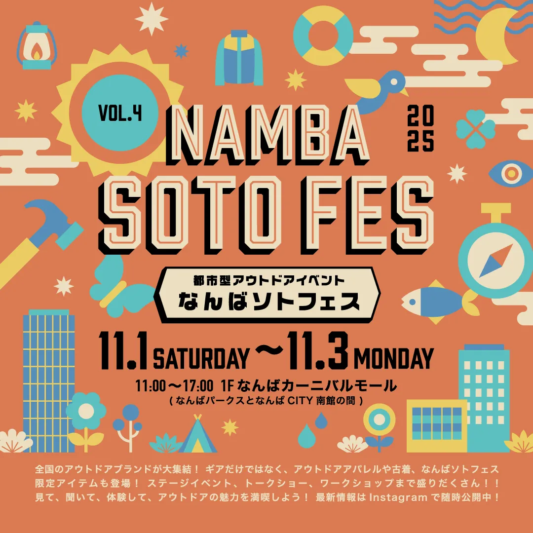 2025年11月1日から3日まで、大阪の商業施設「なんばパークス」で行われる都市型アウトドアイベント「なんばソトフェス 2025」が、南海電鉄主催、南海国際旅行とASOMATOUSの協業によって実現します。このイベントは、都会の中心でありながら、アウトドアの楽しさを体験できる貴重な機会です。