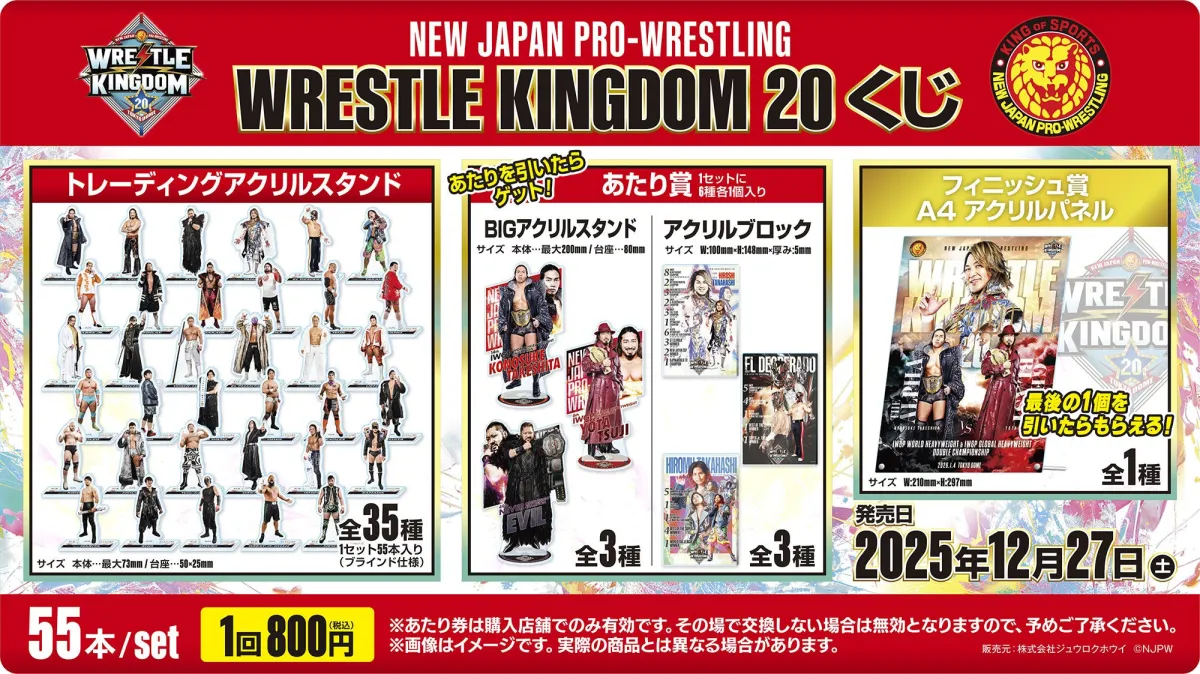プロレスファンの皆様に朗報です!株式会社ジュウロクホウイは、新日本プロレスリング株式会社の監修のもと、2025年12月27日(土)より全国のドン・キホーテやアピタ、ピアゴで「WRESTLE KINGDOM20くじ」を発売することが決定しました。今回のくじでは、総勢35名の人気レスラーが勢揃いし、それぞれの魅力を存分に感じられる内容となっています。
