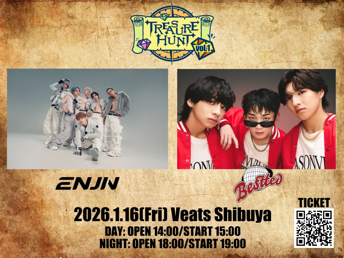 2026年1月16日(金)、東京・Veats Shibuyaにおいて、スカパーJSAT株式会社主催の新たなイベント『TREASURE HUNT vol.1』が開催されます。テーマは「宝探しのように、あなたの毎日を輝かせる素敵なアーティストに出会える」で、参加するのはダンス&ボーカルグループのENJINとBesttedの二組。この特別な一夜では、通常のライブパフォーマンスだけでなく、ここでしか体験できないコラボレーションコーナーも予定されています。