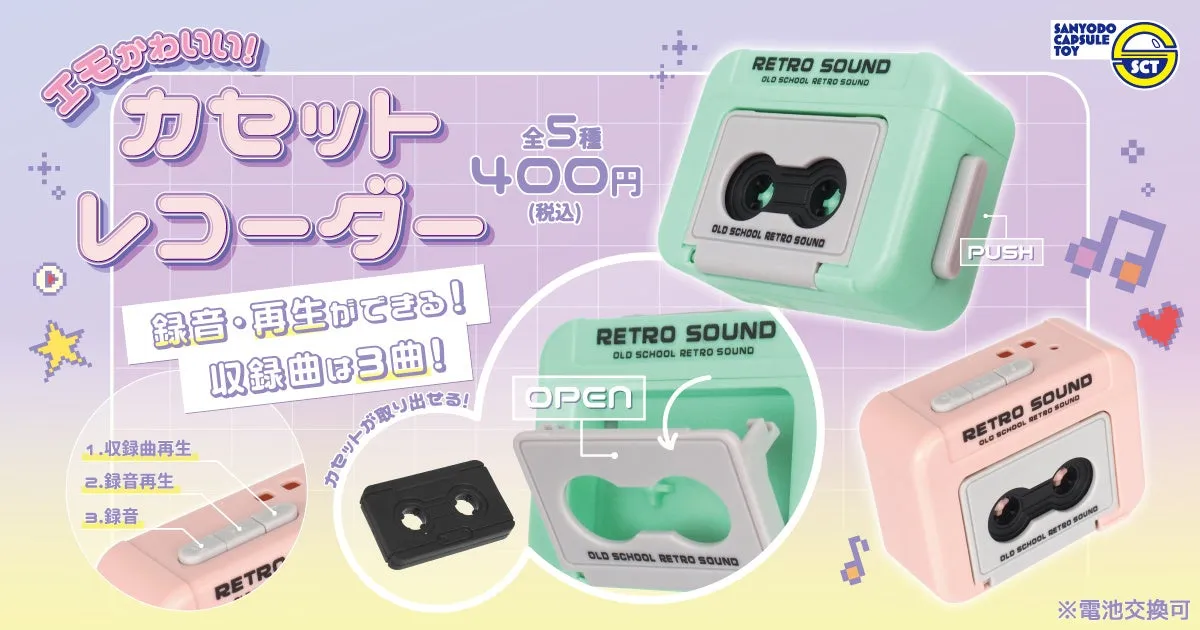 2025年9月29日、株式会社三洋堂から新たなカプセルトイ『エモかわいい!カセットレコーダー』が発売されます。この商品は、レトロな見た目と機能性を兼ね備えた魅力的なアイテムです。カプセル自動販売機で1回400円(税込)で手に入れることができ、全5種類が揃っています。