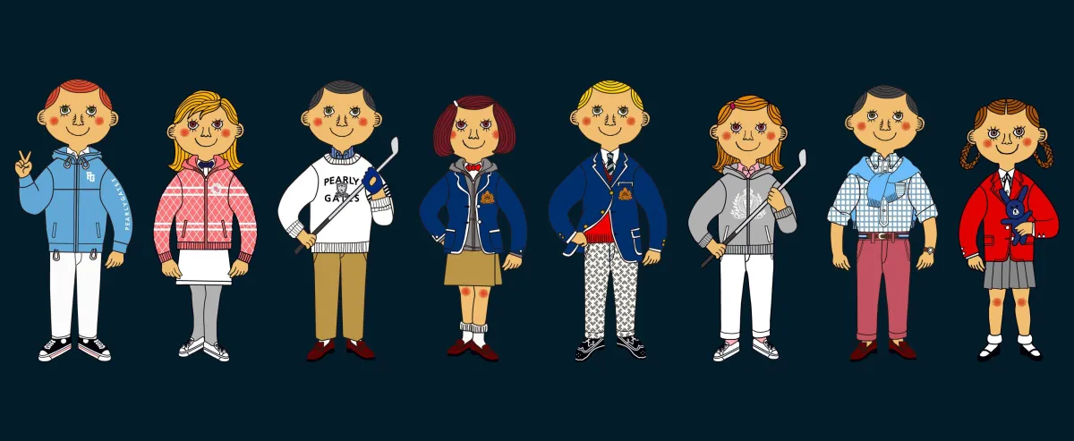 穂積和夫氏による今回のイラストレーションは、コレクションのテーマを象徴するものです。彼が手がけたイラストでは、アイビースタイルを体現するキャラクターたちがパーリーゲイツのウェアを身にまとい、春の魅力を引き立てています。穂積氏の独特な表現方法により、コレクションの持つ世界観がより豊かに伝わります。