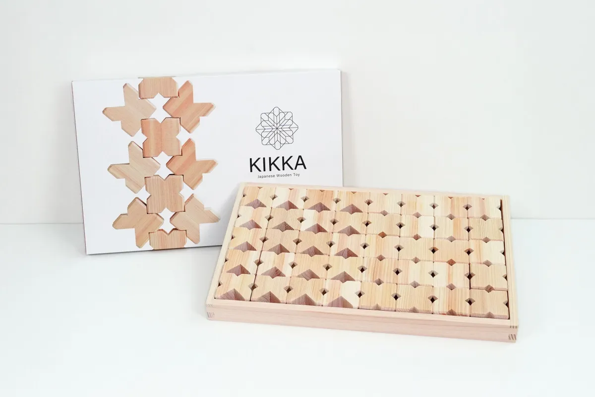 「KIKKA」は、吉野桧を100%使用した積み木で、この素材は日本有数の高級木材として知られています。この積み木の最大の特徴は、その独自なデザインにあります。多面体構造を持つ「KIKKA」は、単に積み重ねるだけでなく、プレイヤーが斜めにしたり、異なるピースを組み合わせたりすることができ、無限の遊び方を楽しめるのです。