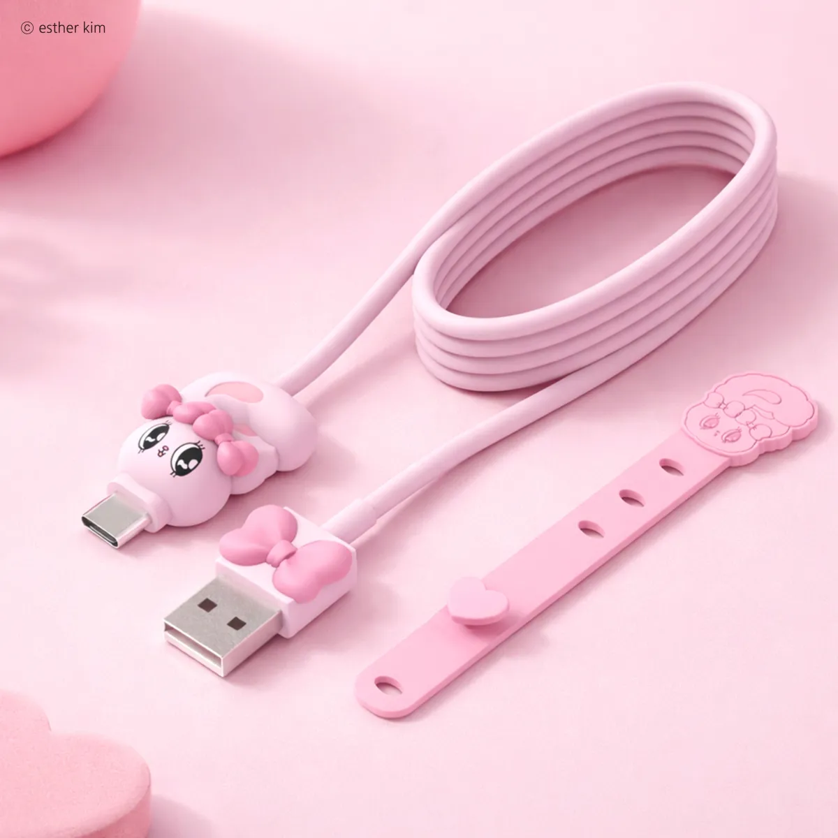 エスターバニーのUSBケーブルには、持ち運びや収納を助けるケーブルバンドが付属している点も嬉しいポイントです。これにより、デスク周りやバッグの中もすっきり整理でき、より快適なデジタルライフを提供してくれます。このように、エスターバニーのUSBケーブルは見た目の可愛さだけでなく、使い勝手の良さも追求されています。