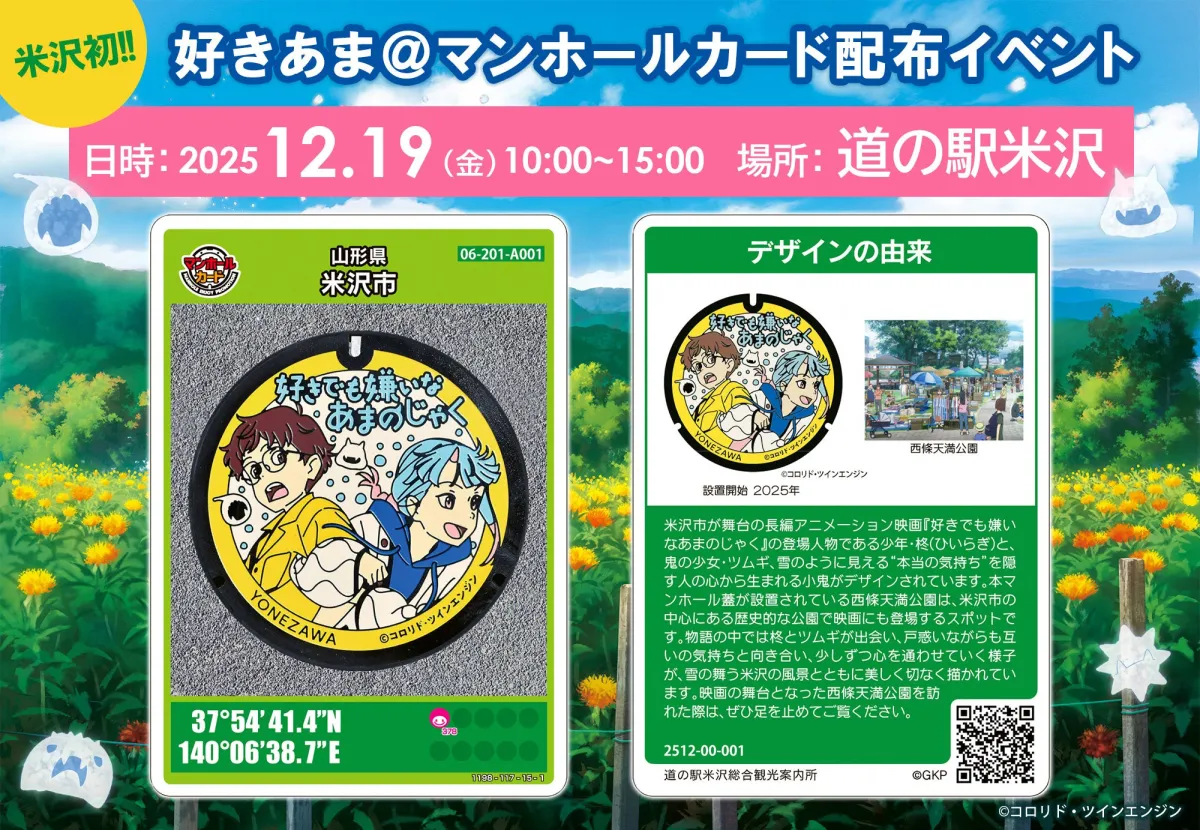 山形県米沢市が舞台のアニメ映画「好きでも嫌いなあまのじゃく」の特別なイベントが開催されます。この映画は、監督・柴山智隆氏の手掛けた作品で、Netflixにて独占配信中です。映画を支える「好きあま@米沢応援隊」が、米沢市初のオリジナルデザインのマンホールカードを作成し、配布イベントを企画しています。