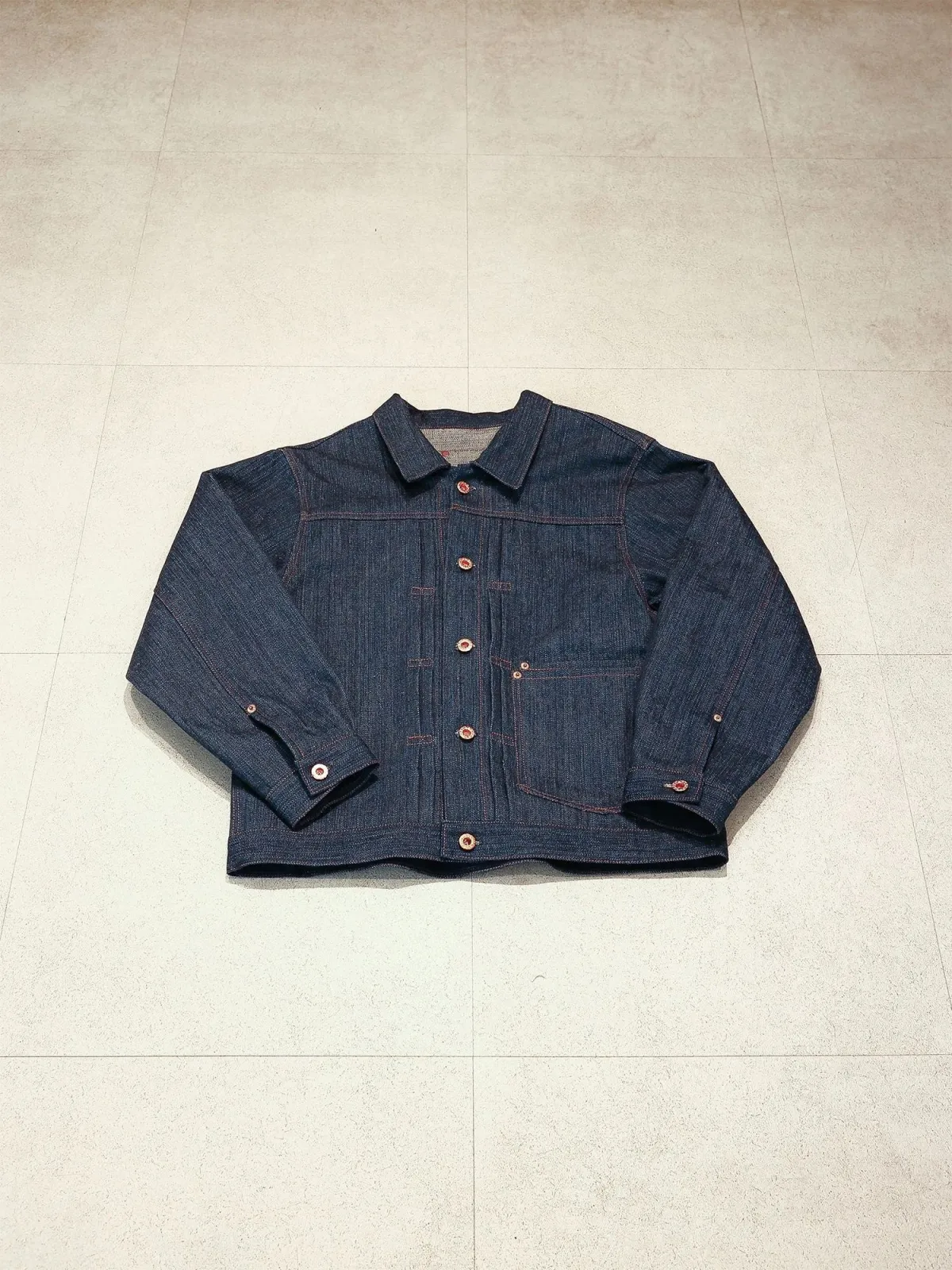 会場では、定番アイテムの他にも、セーラーカラーや丸衿が施された特別なジャケットなど、多様なアイテムが取り揃えられています。これらは、日本の岡山県産デニムを使用しており、丈夫で長持ちすることはもちろん、時間と共に変化していく楽しみもあります。たとえば、15ozデニムジャケットは、シンプルなデザインながらも、素材の質感で魅せる一品に仕上がっています。