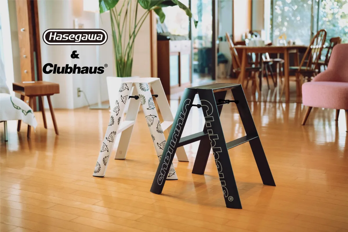 コラボレーションイベントでは、注目の「lucano」シリーズを中心に、多彩なコレクションが展示される予定です。「lucano」は“隠さない脚立”として知られ、美しいデザインと高い安全性、さらにはインテリアとしての親和性が支持されています。このコレクションでは、片面にCLUBHAUSのロゴ、もう片面には“ダンシングロゴ”がデザインされた特別モデルが登場します。イベント期間中に来場されるお客様には、実際にアイテムを手に取り、その質感や使い心地を体験していただくことができる貴重な機会となります。