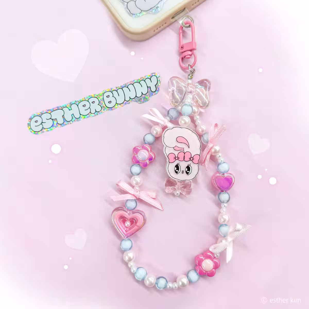 おしゃれなデザインのこのストラップは、モバイルやバッグに取り付けられる便利なアイテムです。ピンク、ホワイト、ラベンダーの3色展開で、あなたのスタイルに合わせて選べます。