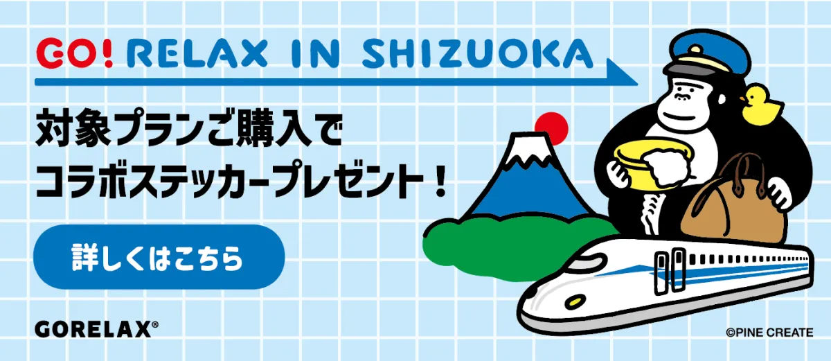 このキャンペーンは、11月26日の「いい風呂の日」から始まり、対象の温泉やサウナプランを予約することで、コラボ限定のオリジナルステッカーを手に入れることができます。デザインは、ごリラックスのキャラクター「まもるさん」が新幹線で静岡に訪れる様子をイメージしたものが2種類用意されています。
