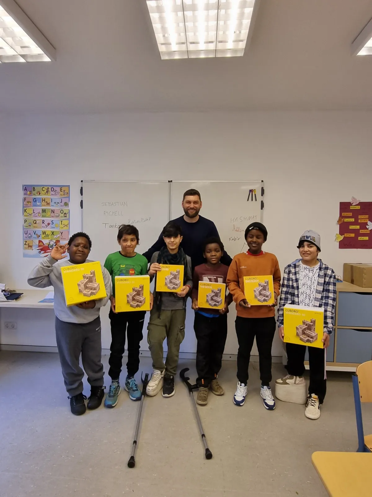 寄贈されたのは、CUBOROスタンダード50が6セット、またCUBOROの解説本が6冊です。これらは、言語や出身、様々な能力の子どもたちが一緒に楽しみながら遊ぶことを通じて、集中力や論理的思考、そしてチームワークを育むために使われます。