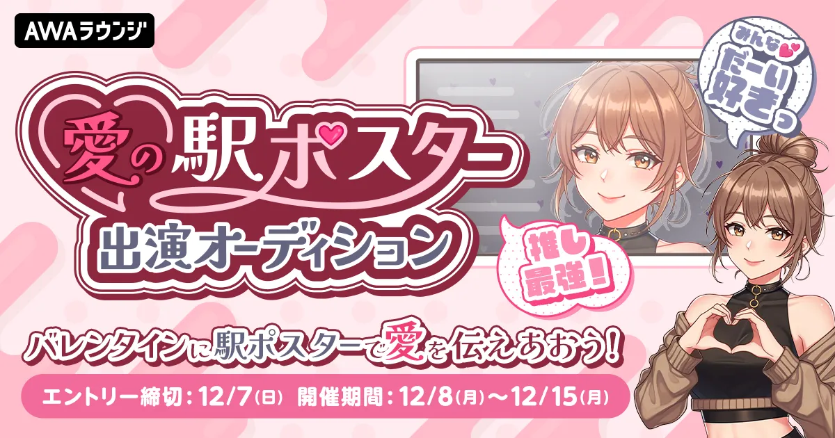 バレンタインの季節が近づくにつれ、特別な想いを伝えたくなるものです。そんな中、AWA株式会社は「♡愛♡の駅ポスター出演オーディション」を開催します。このオーディションは、都内主要駅に掲示されるポスターに出演できる貴重なチャンスを提供するものです!