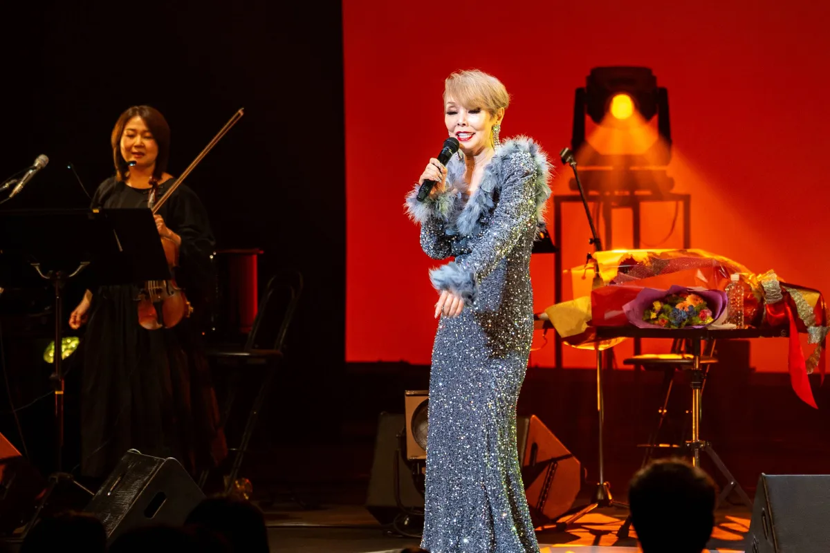 コンサートの中盤では、長女のひとみが母の歌をサポートするために登場し、「地上の星」と大橋卓弥の「ありがとう」を熱唱。アメリカから一時帰国しての共演で、親子の絆を感じさせる温かい瞬間が会場に広がりました。聴く者の心をつかむ親子のハーモニーは、感動的で特別な思い出となりました。