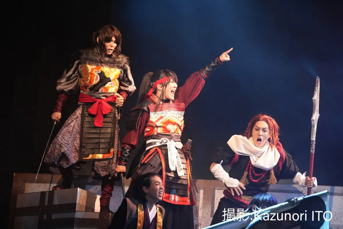 そんな義経を深く思慕する静御前を演じる佐月愛果は、真っ直ぐな眼差しで義経を見つめ、その純粋さが観客に安心感を与えます。さらに、吉野を追う佐藤忠信役の亀田結心も、名古屋公演からの続投で、今回もダンスや殺陣で多くの存在感を放っています。