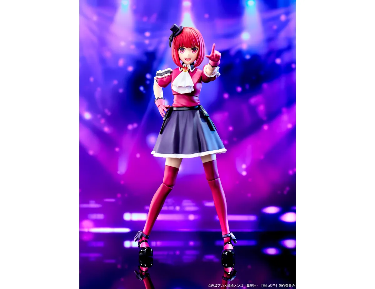 「KADOKAWA PLASTIC MODEL SERIES」に新たに登場する有馬かなは、全高約158mmの可動プラスチックモデル。独自の成型色と彩色済みパーツを用いることで、組み立てるだけでキャラクターの色合いを再現できる点が魅力です。特に、劇中の衣装に合わせた可動機構は、さまざまなポーズを取ることを可能にしており、ライブシーンのダンスや歌の動作をリアルに再現できます。これに加え、有馬かなの「笑顔」「自信顔」「ウインク顔」という異なる表情パーツが3種類標準で付属し、さらにオプションの「マイク」「手首パーツ8種」「ディスプレイ用台座2種」が同梱されています。