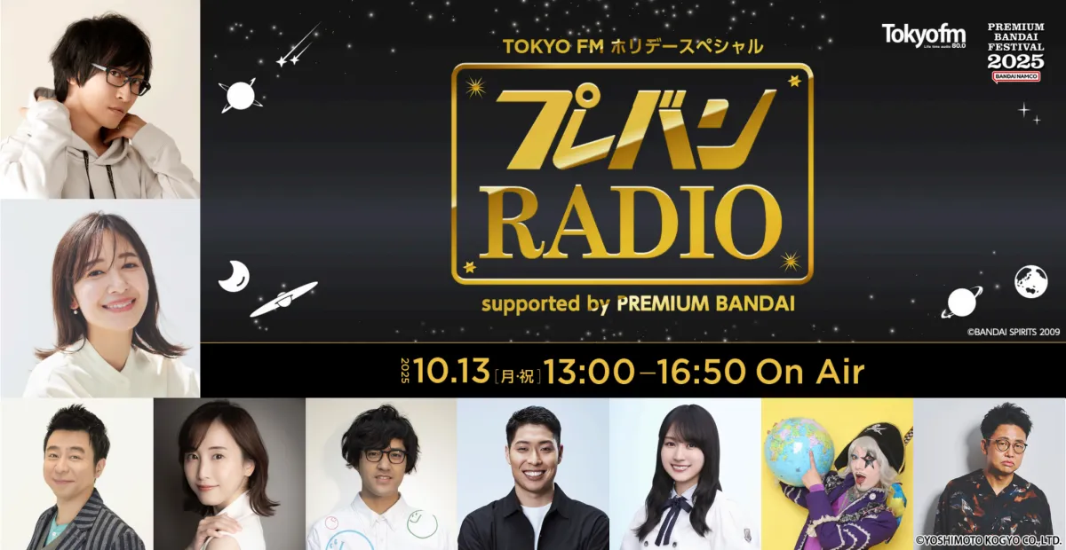 TOKYO FMでは、2025年10月13日(月・祝)に、生放送の特別番組『プレバンRADIO supported by PREMIUM BANDAI』をお届けします。この番組では、アニメや特撮の世界に魅了された豪華ゲストたちが、その魅力について語り合うものです。時間は13:00から16:50までの約4時間です。