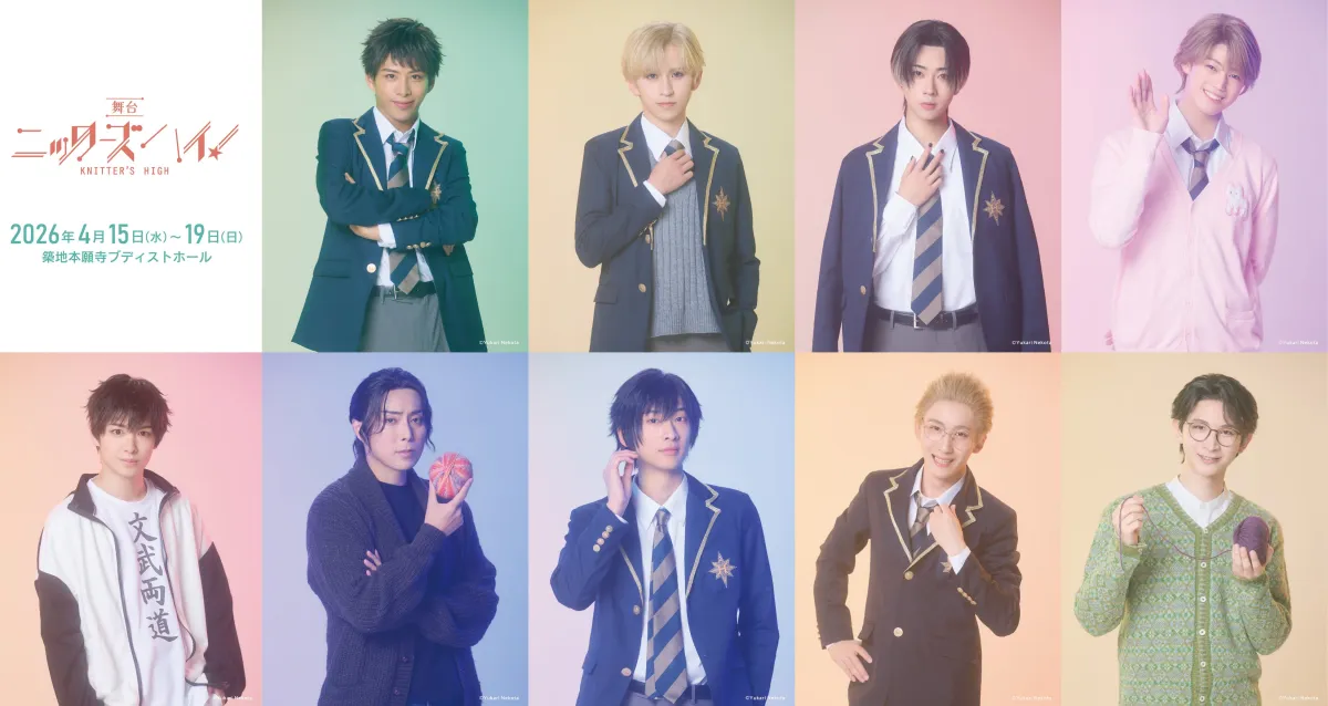 舞台『ニッターズハイ!』が、2026年4月15日から19日まで築地本願寺ブディストホールで上演されます。本作は、高校生の青春と友情を描いた物語で、原作は猫田ゆかりの同名漫画です。主演には森崎大祐、沖矢悠、渡邊樹などが名を連ね、青春の葛藤と成長を熱演します。