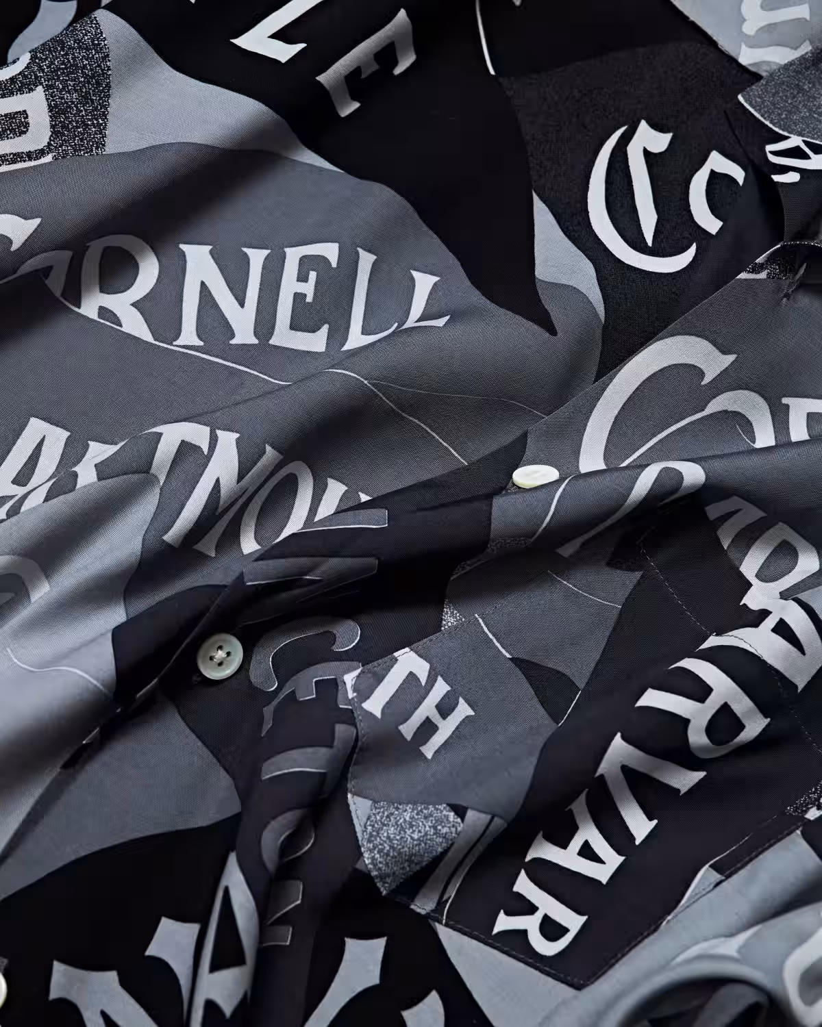 レーヨン素材のアロハシャツは、ヴィンテージのペナントをモチーフにしたグラフィックが特徴。<ネクサスセブン>の定番アイテムをモノトーンにアレンジして、都会的な印象をプラスしました。シックで現代的なデザインのこの一枚は、夏のスタイルに新鮮さを与えてくれます。