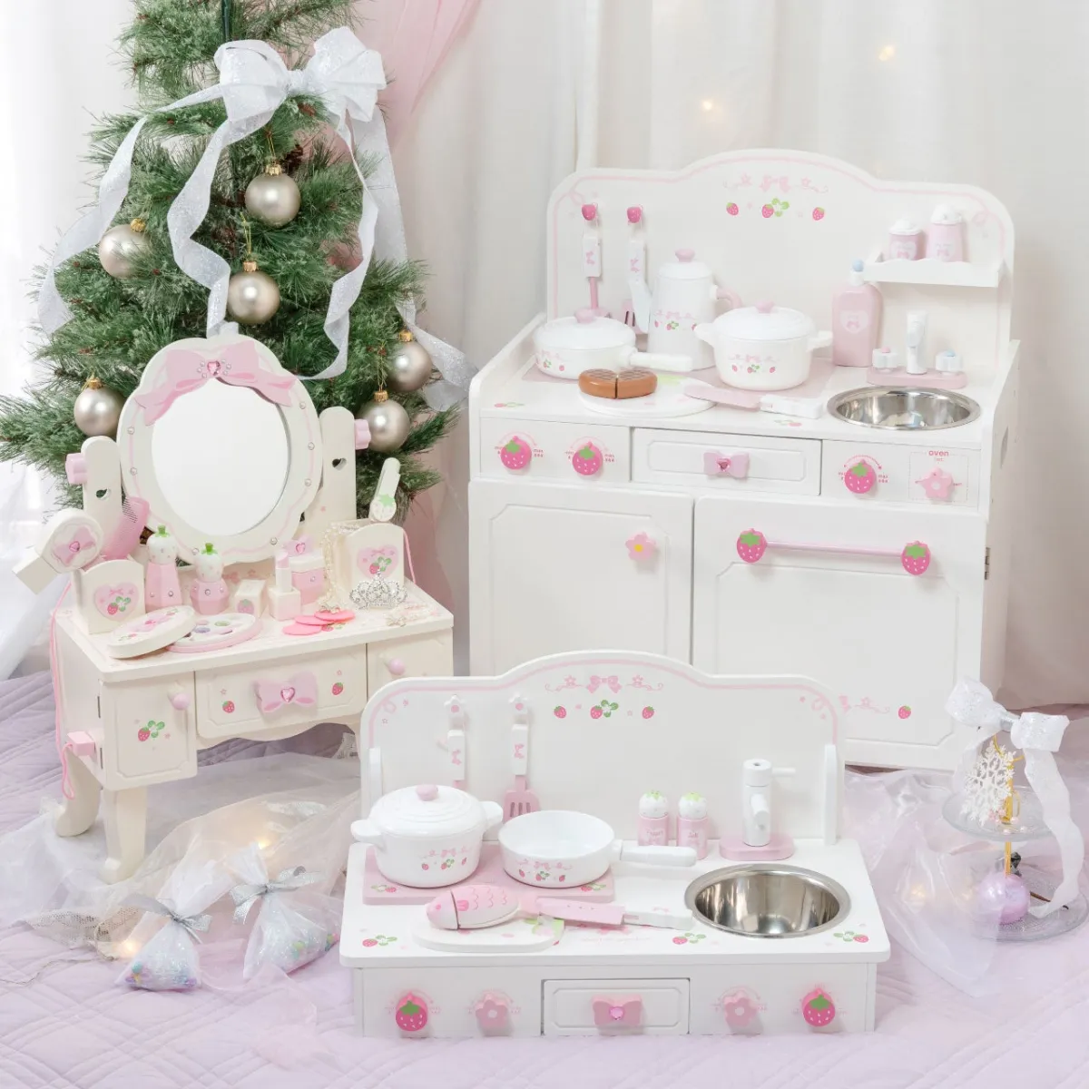 さらに、同シリーズには「スウィートストロベリー冷蔵庫」やおしゃれな「スウィートティアラドレッサー」が新たにラインアップに加わりました。これらは既存のインテリアとも調和するデザインとなっており、子どもが遊び終わった後も実用的に使える家具として長く愛されます。