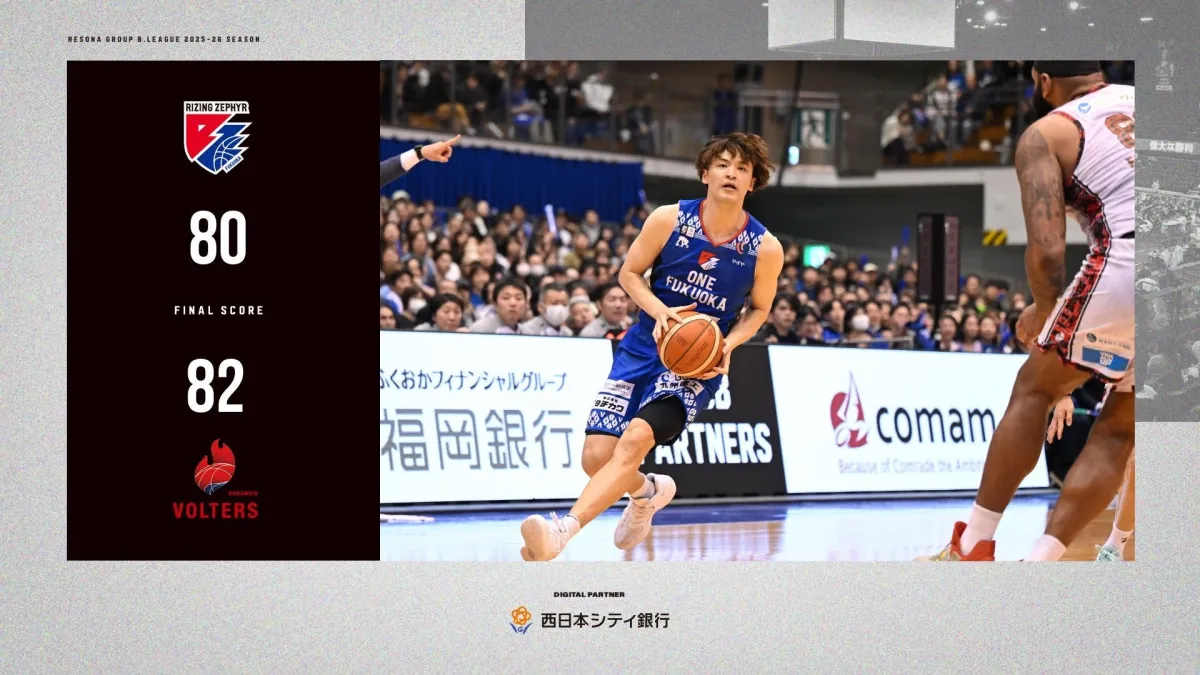 2026年4月1日、福岡国際センターで行われたB.LEAGUE 2025-26シーズンの九州ダービー、ライジングゼファーフクオカ対熊本ヴォルターズの試合は、福岡が80-82で敗れました。両チームのファンが待ち望んだ一戦は、終盤まで目が離せない展開となりました。
