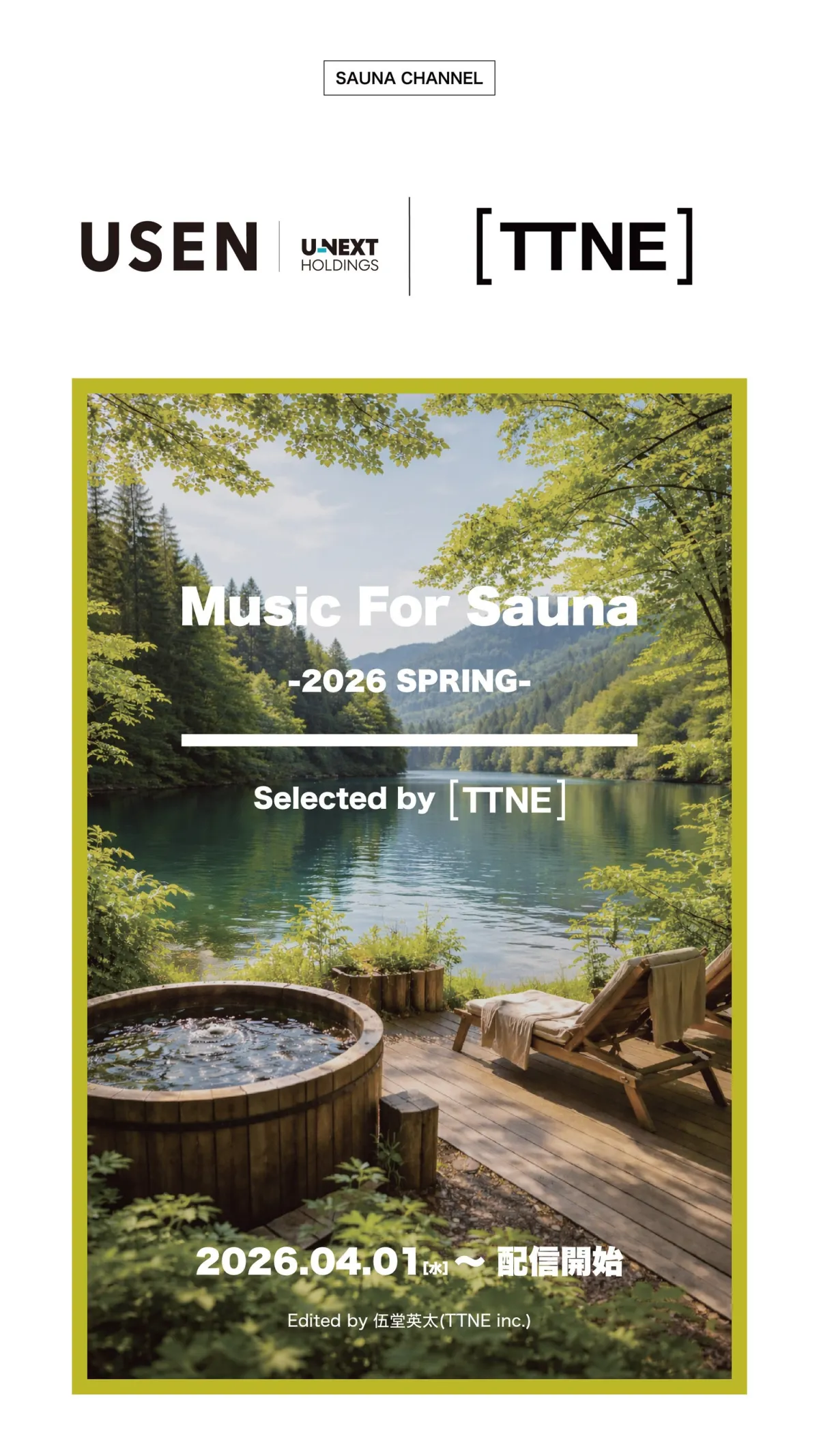 サウナ好きにはたまらないニュースが届きました!TTNE株式会社の伍堂英太が、USENの音楽配信サービス「OTORAKU -音・楽-」内のサウナチャンネルで春のプレイリスト『Music For Saunner - 2026 Spring -』を発表しました。2026年4月1日から楽しむことができるこのプレイリストは、春のサウナ体験を一層充実させるために選ばれた50曲がラインナップされています。