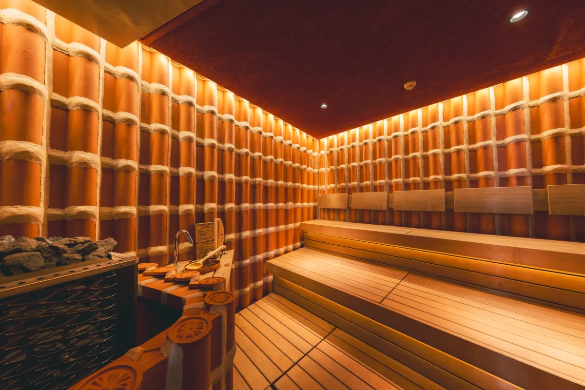 このサウナは、沖縄の伝統的な赤瓦からインスピレーションを受けたデザインです。赤褐色の壁が温もりを感じさせる空間で、沖縄の自然や文化が見事に表現されています。古民家や首里城など、沖縄の名所に見られる赤ガーラは、ここに来る人々に沖縄の歴史を感じさせてくれます。