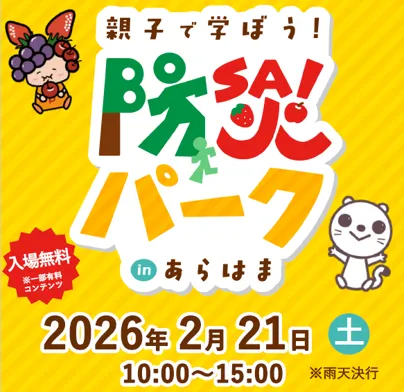 親子で楽しく防災について学べるイベント「親子で学ぼう!防災パーク in あらはま」が2026年2月21日(土)に、JRフルーツパーク仙台あらはま・深沼うみのひろば(倉庫棟)で開催されます。このイベントは、株式会社東日本放送と仙台ターミナルビル株式会社の共同プロジェクトです。