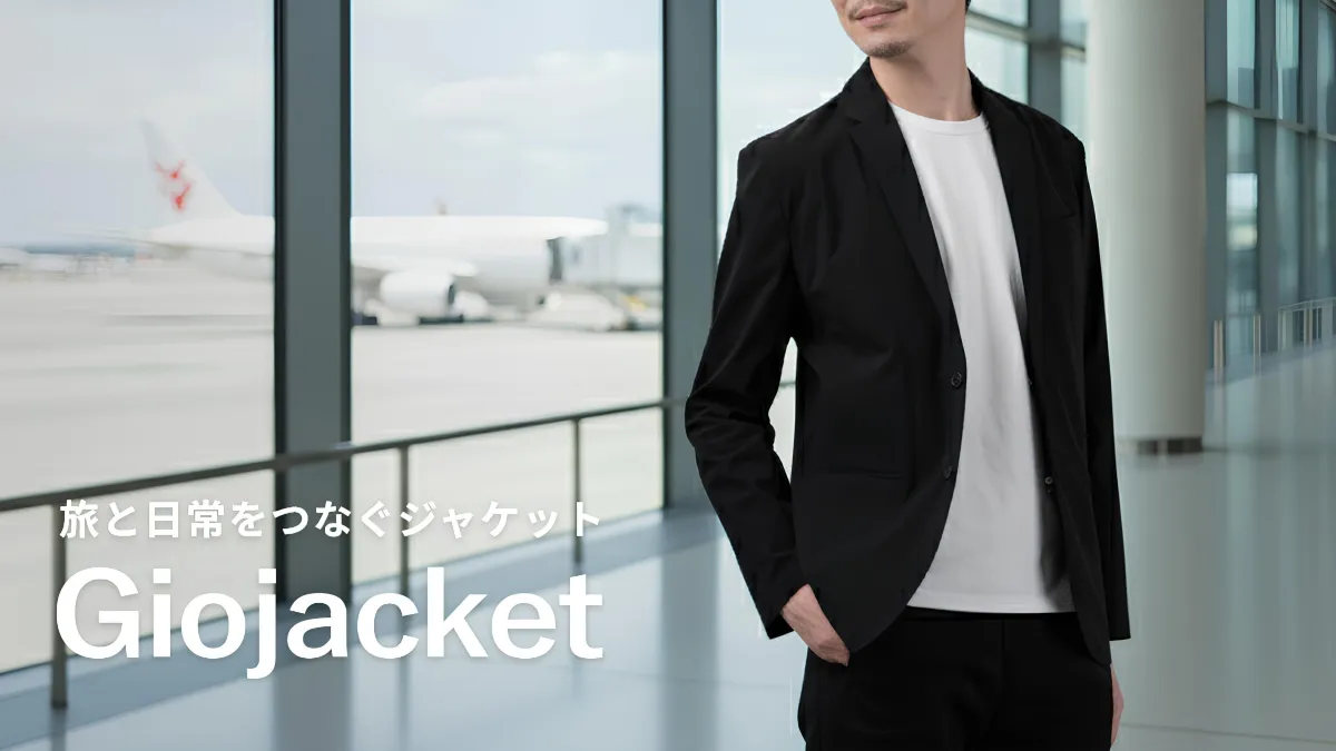 同素材の「Giopants」と組み合わせることで、出張や日常使いにもマッチするセットアップスタイルが完成します。