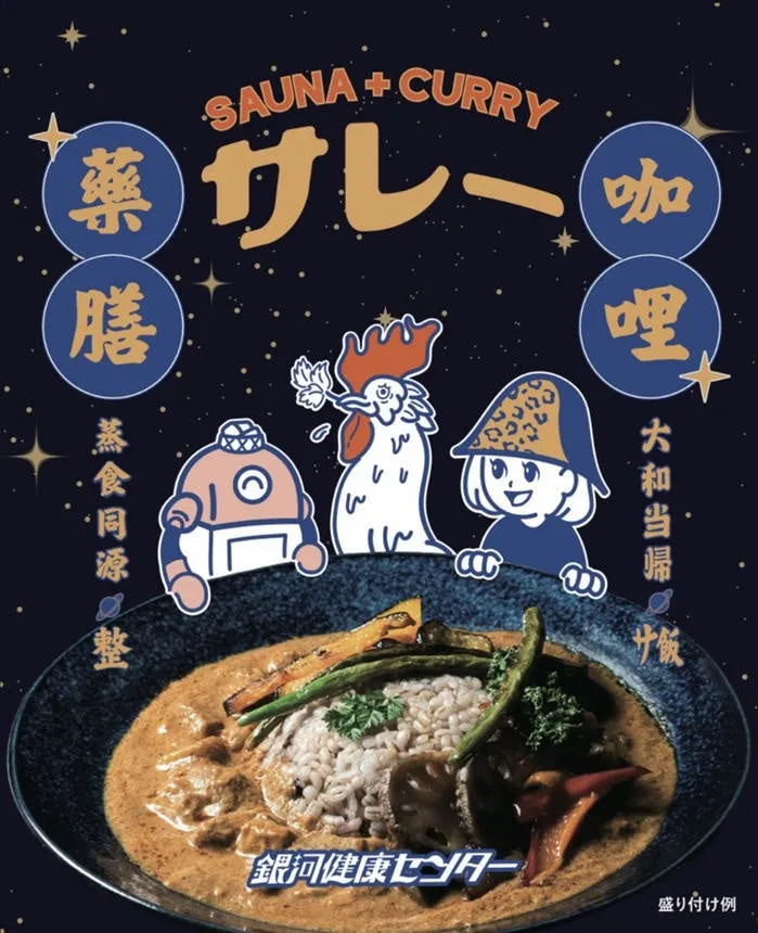 「サレー」とは、サウナ後のデトックスを助けることをテーマにしています。カレーには、乾姜や大和当帰が配合されているため、体を内側から温め、自然なリフレッシュ感を提供。シンプルながらもごぼうやこんにゃくなどの豊富な薬膳が入っており、優しい味わいが特徴です。スパイシーさもほどよく感じられ、食べ応えがあります。