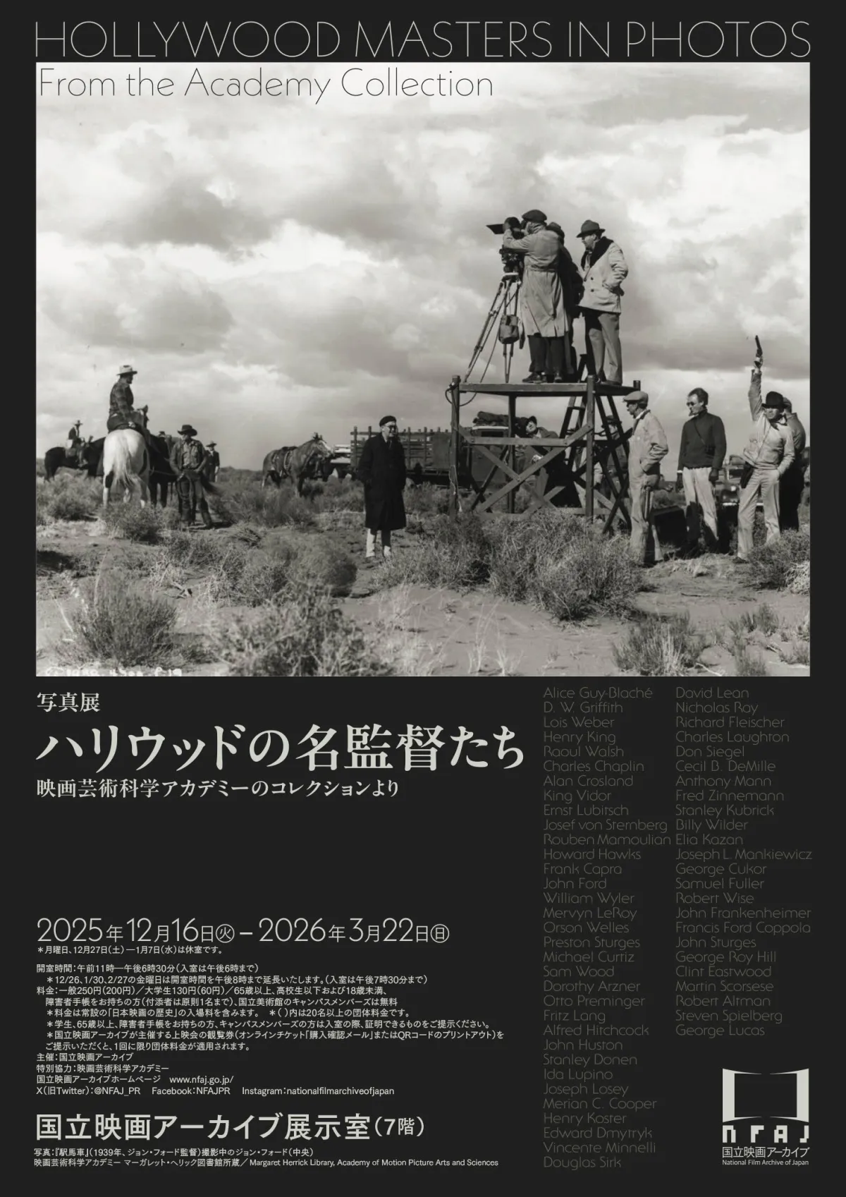 国立映画アーカイブでは、2025年12月16日から2026年3月22日までの期間、「写真展 ハリウッドの名監督たち 映画芸術科学アカデミーのコレクションより」が行われます。本展は、アメリカの映画芸術科学アカデミーとの特別協力のもと、彼らが所蔵する貴重な写真コレクションが展示されます。ここでは、黄金期のハリウッドで制作された名作の舞台裏が垣間見え、映画ファンにとって見逃せない体験となるでしょう。